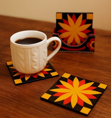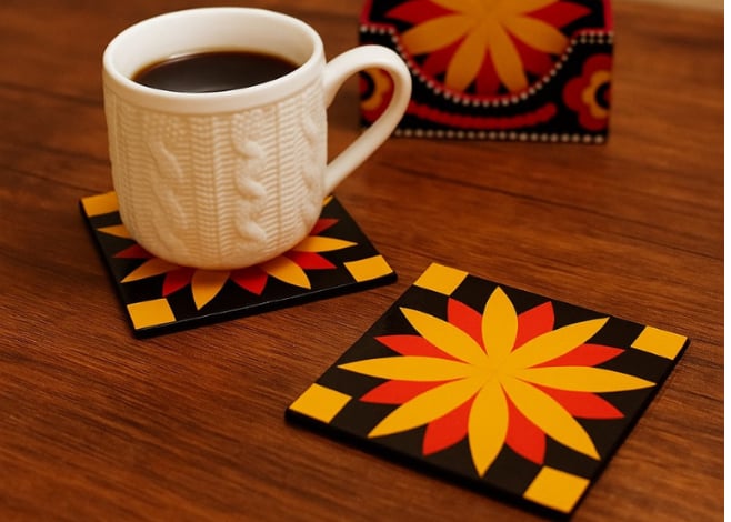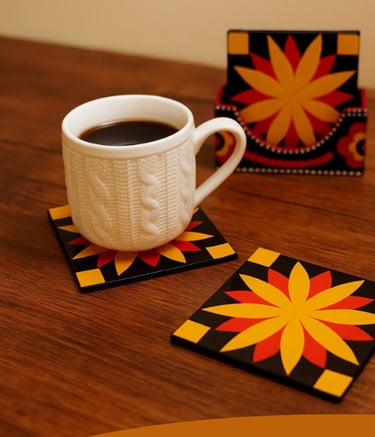 Perfectly sized 9.5 × 9.5 cm coasters for tea cups, coffee mugs, and glasses