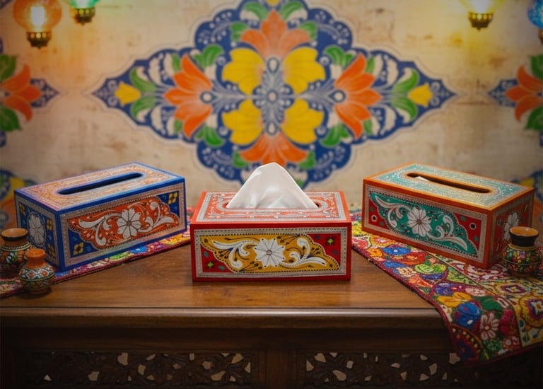 At Smart Basket, every item is carefully handcrafted by skilled artisans, drawing inspiration from the iconic truck art seen across roadside cafés and bustling roads. Our collection includes chamakpatti wall décor, decorative plates, coasters, trays, trolley bags, and customized gift items—each reflecting the rich heritage of Pakistani truck art while remaining practical, durable, and perfect for everyday use.